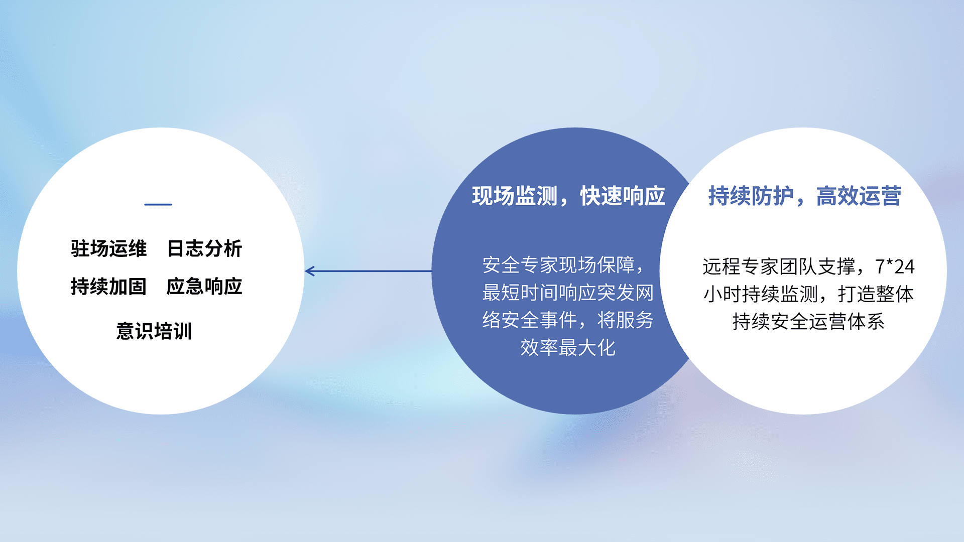 针对客户行业特性,,,,提供专属的一站式安全管理服务,,,帮助客户全面感知网络空间威胁,,通过安全专家的线上、、、、线下防护支持,,实现风险闭环,,,,将安全保障常态化,,,为客户打造常态化安全运维运营服务。。